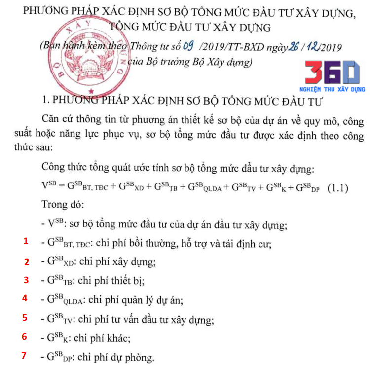 7 chi phí trong tổng mức đầu tư theo NĐ68/2019 bao gồm
