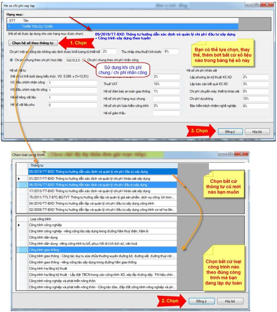 Kiểm tra lại loại công trình, cấp công trình… lựa chọn bảng đúng theo dự toán gốc