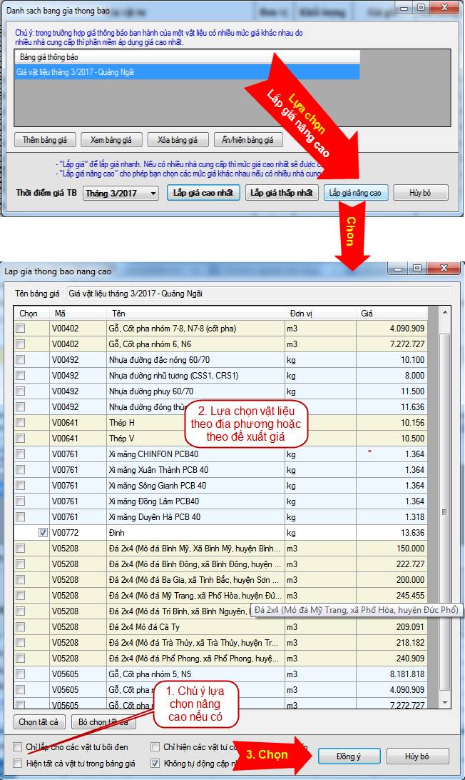 Hướng dẫn nhập giá thông báo từ phần mềm