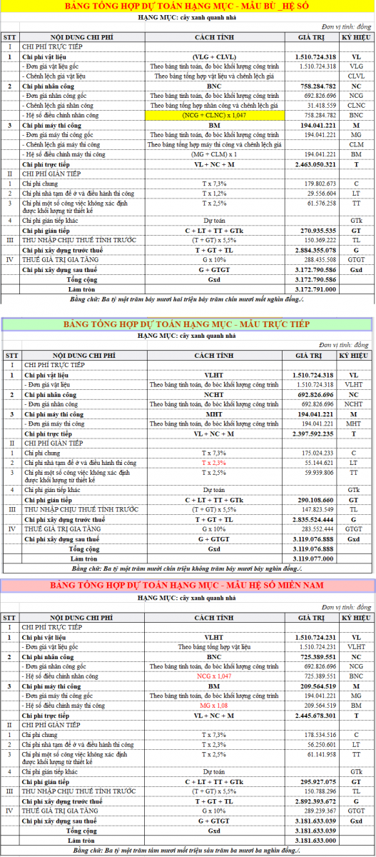 Hiện tại có 3 bảng tông hợp bạn thường dùng là bảng mạc định theo thông tư có giá gốc + bù trừ, mẫu thứ 2 là mẫu tách cước và mẫu cuối là mẫu trực tiếp (mẫu này chỉ yếu dùng cho đấu thầu)