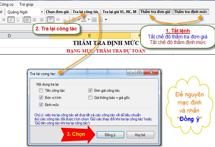 5. Chạy lại dự toán đúng đơn giá theo quy định
