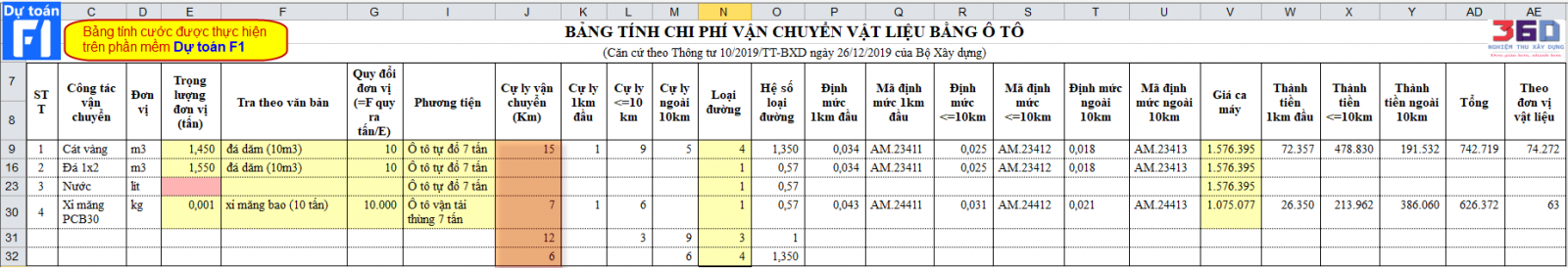 Thực tế với loại cước vận chuyển này bạn cần phải tỉnh được giá ca máy để áp dụng được vào file tính toán. Với ca máy thì có thể có địa phương sử dụng phương pháp tính, có thể có địa phương sử dụng phương pháp tính mới. Tuy nhiên theo cách tính mới thì có thể giá ca máy sẻ được thay đổi hàng quý, hàng hàng năm và người dùng có thể nhập trực tiếp vào giá ca máy.