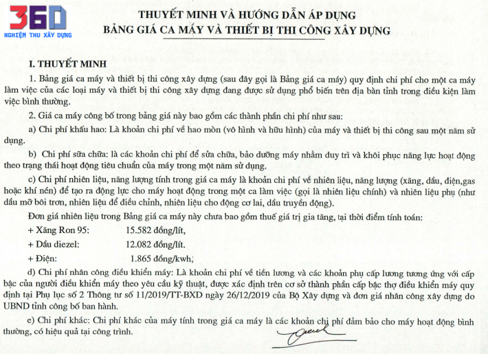 4. Máy thi công xác định theo TT11/2019/BXD và nhiên liệu theo thời điểm được công bố