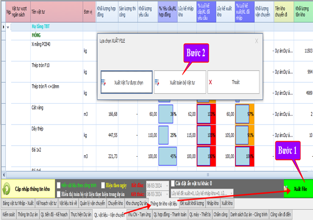 → Chỉ xuất những vật tư bạn đang tick chọn (thích hợp khi muốn xuất một phần dữ liệu).