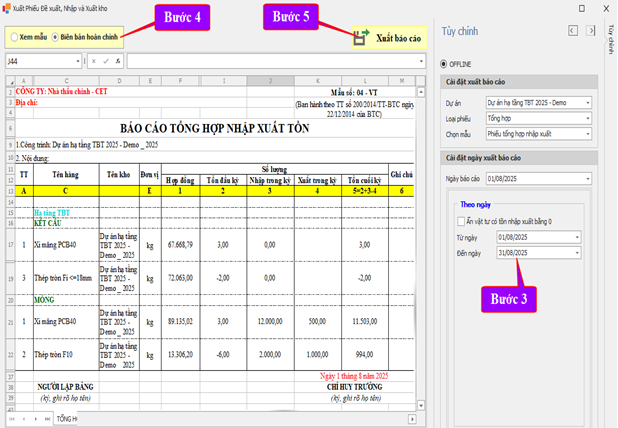 Các Bước xuất báo cáo TIẾP THEO chi tiết:
