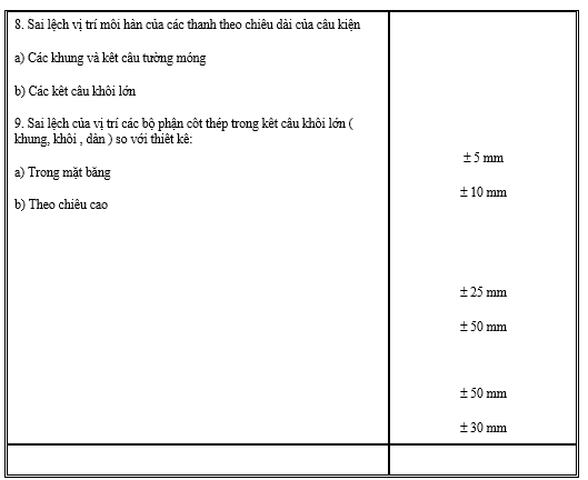 Với các đường hàn cũng cần kiểm tra cẩn thận, việc kiểm tra đường hàn phải đạt các sai lệch không được vượt quá số liệu cho trong bảng sau đây