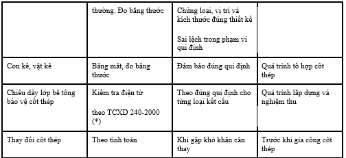* Kiểm tra sự đảm bảo cốt thép đúng vị trí trong xuốt quá trình đổ bê tông.