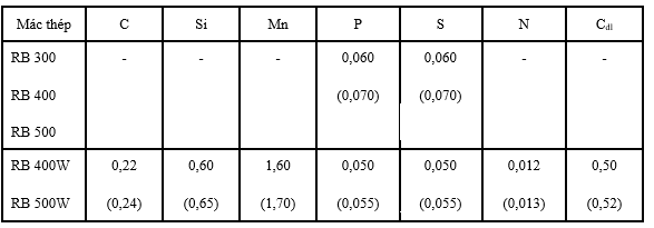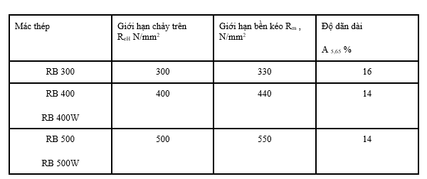 Các chỉ tiêu cơ học của thép vằn như trong bảng :