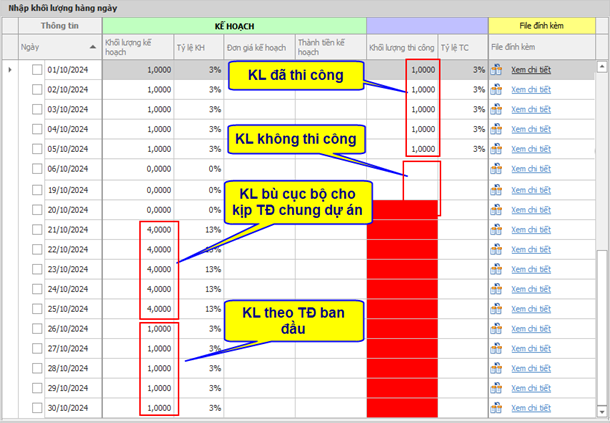 Khối lượng “Kế hoạch” sau khi điều chỉnh xem cửa sổ bên phải sẻ có dạng như hình