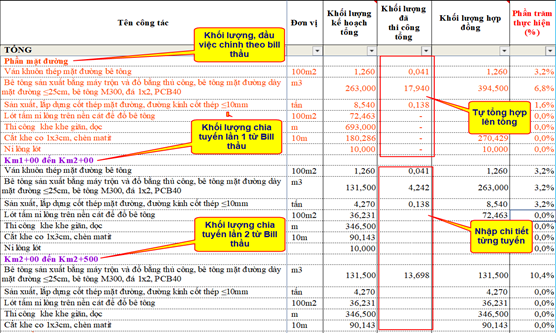 Phân đoạn đo bóc, chia tầng – tuyến cho nhà thầu, cập nhật phân khai và nhập khối lượng chi tiết theo tuyến.