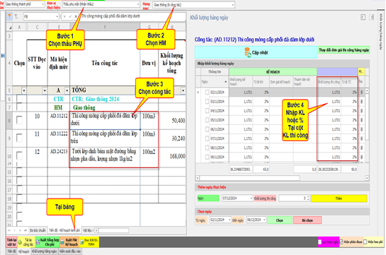 + Có nhiều cách nhập khối lượng thi công hàng ngày và ở đây là 3 phương pháp thông dụng trên phần mềm