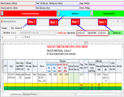Nhật ký thiết bị thi công là công cụ ghi lại toàn bộ quá trình vận hành máy móc trên công trường theo từng ngày, từng công tác. Báo cáo này giúp: